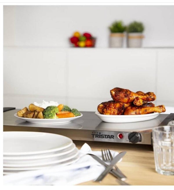 Met de multifunctionele Tristar BP-6285 - Buffetwarmer hou jij je eten lekker warm. De buffet serveerder kan worden gebruikt om eten in te serveren, maar ook als een warmteplaat om je eten op warm te houden. Zo kan jij je borden en pannen op de plaat zetten om deze op de juiste temperatuur te houden. De buffet serveerder heeft een vermogen van 300 W en heeft een behuizing van roestvrijstaal (RVS) die hitte bestendig is. De geïntegreerde handvaten zorgen ervoor dat de warmteplaat makkelijk kan worden verplaatst. Na het gebruik kan deze makkelijk worden schoongemaakt.